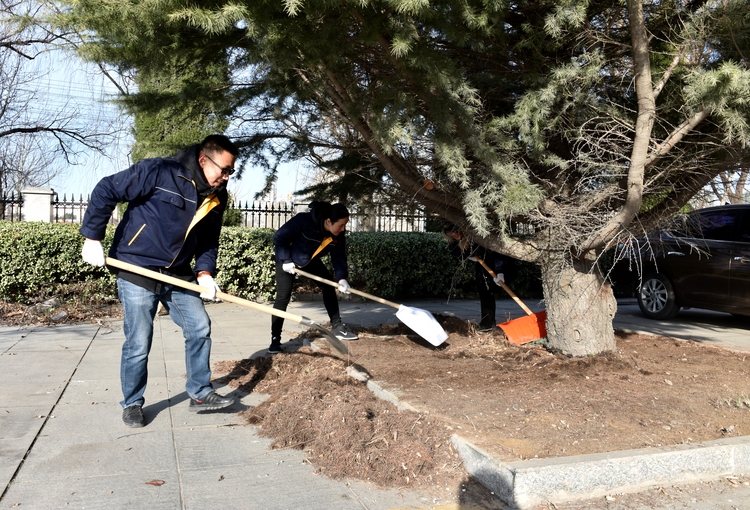 3月12日當天上午,盡管北風呼嘯、春寒料峭,但在公司總部院內的大樹下、綠化帶、草坪、花壇等區(qū)域,參與活動的干部員工自備鐵锨、筢子、抓鉤、掃帚等工具,小心翼翼地清理著散布在其中的枯枝、落葉、雜草、塑料袋等垃圾,現(xiàn)場呈現(xiàn)出熱火朝天的勞動景象。經(jīng)過近兩個小時的不懈努力,將旮旮旯旯的垃圾全部清除完畢,整個園區(qū)面貌為之煥然一新。與此同時,金潮公司行政后勤部門還對園區(qū)內老化的病樹、枯樹進行了集中排查。據(jù)悉,經(jīng)過現(xiàn)場勘察有15棵較大樹木需要更新補栽。根據(jù)總裁的部署和要求,在金潮建工園林綠化部門的技術指導下,在金潮公司行政人事中心的精心組織下,3月29日上午,“2019年總部園區(qū)植樹方案”付諸實施。