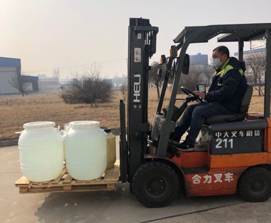 近日,在復(fù)工復(fù)產(chǎn)的關(guān)鍵時(shí)刻,1.75噸防疫急需的各種濃度的消毒液陸續(xù)從金潮果蔬公司運(yùn)往股份公司、新材、電池、招和、建工、地產(chǎn),以及周邊溫家、鑫泰電纜廠和岔道村等單位。在抗擊新型冠狀病毒疫情的緊要關(guān)頭,為解各企業(yè)消毒液匱乏的燃眉之急,29日,金潮果蔬緊急安排生產(chǎn)、品控等專業(yè)人員到廠,積極組織干部員工加班配置消毒液。經(jīng)過不懈的努力,1.75噸各種濃度的消毒液配制完畢。
