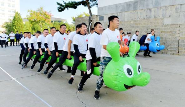 今年新增的趣味項目——毛毛蟲:比賽道具顏色亮麗,憨態(tài)可掬。參賽人員步調一致,配合默契,合力“駕馭”著這條“怪獸”奮力往前沖。經(jīng)過一番斗智斗勇的較量,比賽前三名相繼產(chǎn)生,他們依次是:地產(chǎn)公司、新材公司、集團一隊。