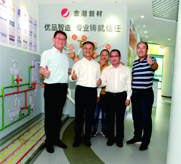 本報(bào)訊 6月28日下午,中國(guó)塑料加工工業(yè)協(xié)會(huì)理事長(zhǎng)朱文瑋,秘書長(zhǎng)王占杰一行蒞臨金潮新材參觀指導(dǎo)。金潮控股集團(tuán)輪值總裁苑永海,金潮新材總經(jīng)理曹京成,常務(wù)副總經(jīng)理蘭茂衍、技術(shù)總工劉樹遠(yuǎn)等陪同。