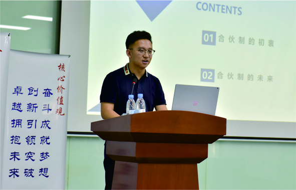 三位貴賓圍繞“合伙制”,依次進(jìn)行了精彩的主題宣講。同濟(jì)大學(xué)經(jīng)濟(jì)學(xué)學(xué)士,哲學(xué)碩士,管理學(xué)在讀博士程宇銳宣講的主題是《合伙制的初衷與未來》;金柚網(wǎng)人力資源外包濟(jì)青分公司總經(jīng)理李亞東講述了自己曾經(jīng)就職于海爾集團(tuán)、阿里巴巴、韓國三星等國內(nèi)外著名 企業(yè)的職業(yè)歷程和職業(yè)規(guī)劃;北京德和衡律師事務(wù)所楊振偉律師為公司未來合伙制的落地實(shí)施,做了進(jìn)一步的遠(yuǎn)景鋪墊。宣講培訓(xùn)結(jié)束后,由行政人事總監(jiān)公布了合格合伙牽頭人候選人名單,以及后續(xù)合伙制方案公布的有關(guān)事宜。