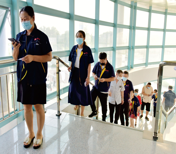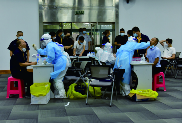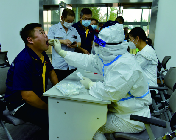 按照上級全員核酸檢測的總體部署和要求,金潮控股集團(tuán)在做好“德爾塔”毒株疫情防控知識宣傳、嚴(yán)格人員進(jìn)出登記信息、檢測體溫、重點(diǎn)區(qū)域環(huán)境消殺、落實(shí)全員新冠疫苗接種工作等常態(tài)化疫情防控的同時,行政人事中心積極與大秦家街道有關(guān)部門溝通協(xié)調(diào),將報(bào)告廳二樓會議室列為集中監(jiān)測點(diǎn),要求各企業(yè)行政人事部對所有在冊員工的身份信息進(jìn)行登記造冊,并指定專人全程跟蹤,積極組織、配合醫(yī)務(wù)人員的工作,有力有序地開展了全員核酸檢測,為有效阻斷“德爾塔”新冠變異病毒傳播,攜手筑牢群體抗疫屏障擔(dān)當(dāng)盡責(zé)。