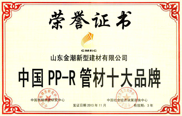 金潮管業(yè)榮膺“中國(guó)PP-R管材十大品牌”稱號(hào)